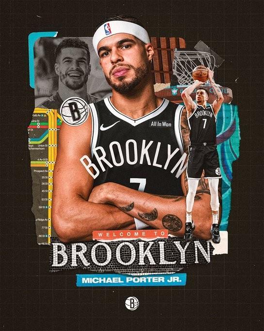 在欢迎海报中,小波特穿篮网7号球衣,球衣记者Etienne Catalan也确认了小波特将穿篮网7号球衣出战。